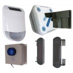 UltraDIAL-batteriebetriebener IP66--GSM-Alarm, der mit 4 drahtlosen BT-PIRs mit eingebauten Sirenen geliefert wird. Er kontaktiert bis zu 3 Inhaber über Telefon und SMS. Geliefert mit 5 x Fernbedienungen, ideal für viele Anwendungen.