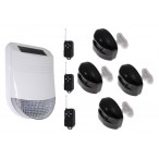 UltraDIAL-batteriebetriebener IP66-isolierter-GSM-Alarm, der mit 4 drahtlosen Außen-PIRs mit integrierten Sirenen und 1 x Außensolar-Sirene geliefert wird. Er kontaktiert bis zu 3 Inhaber über Telefon und SMS. Geliefert mit 5 x Fernbedienungen, ideal für viele Anwendungen einschließlich Baustellen.