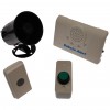 Funktürklingelsystem mit 800 Metern Reichweite in Kombination mit einem mattsilberfarbenem Klingelknopf & Empfänger, ideal für Anwendungen, die große Reichweite benötigen.